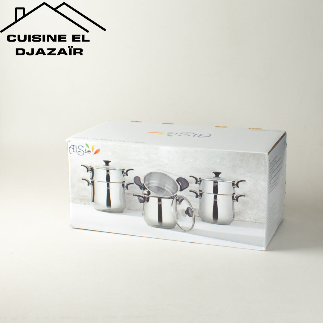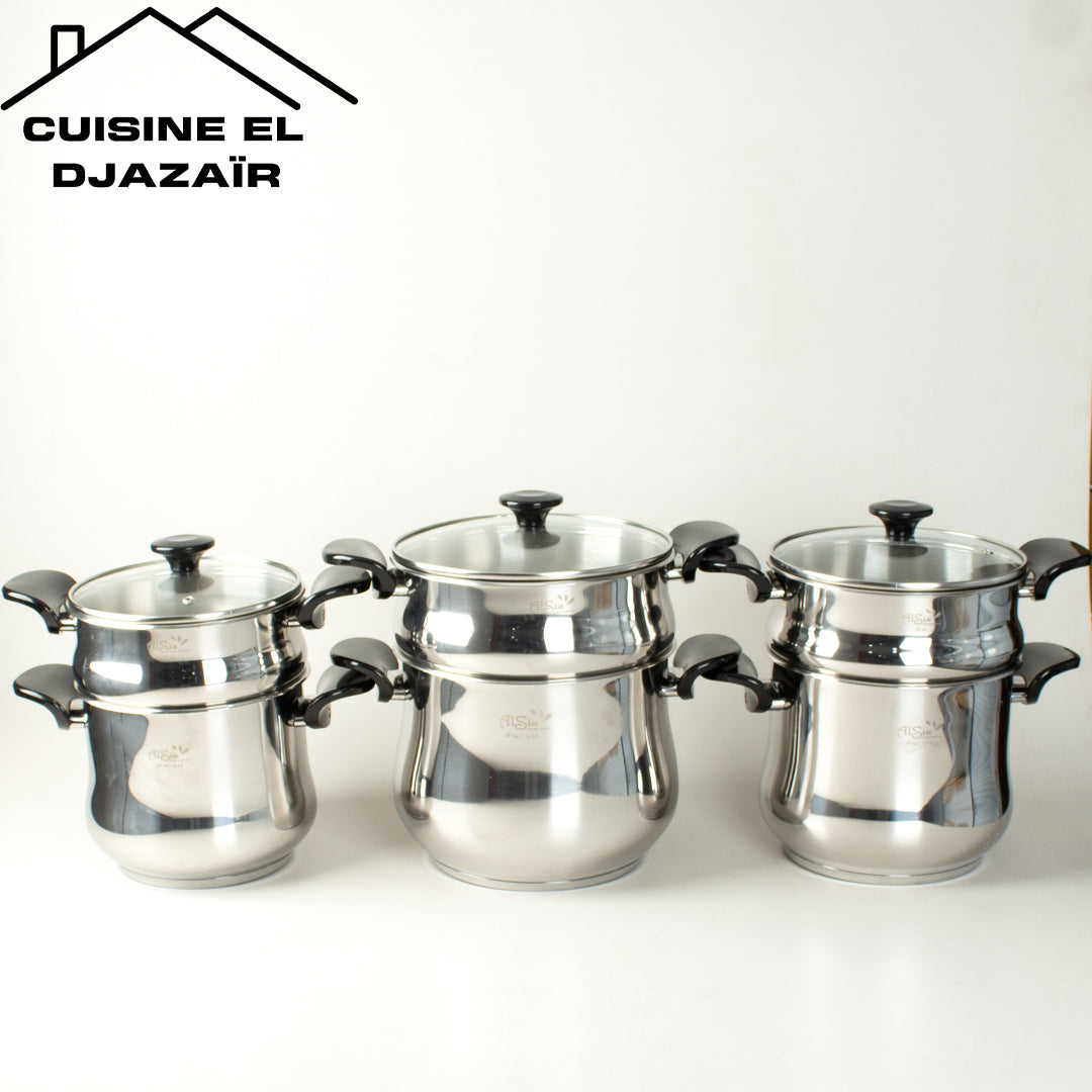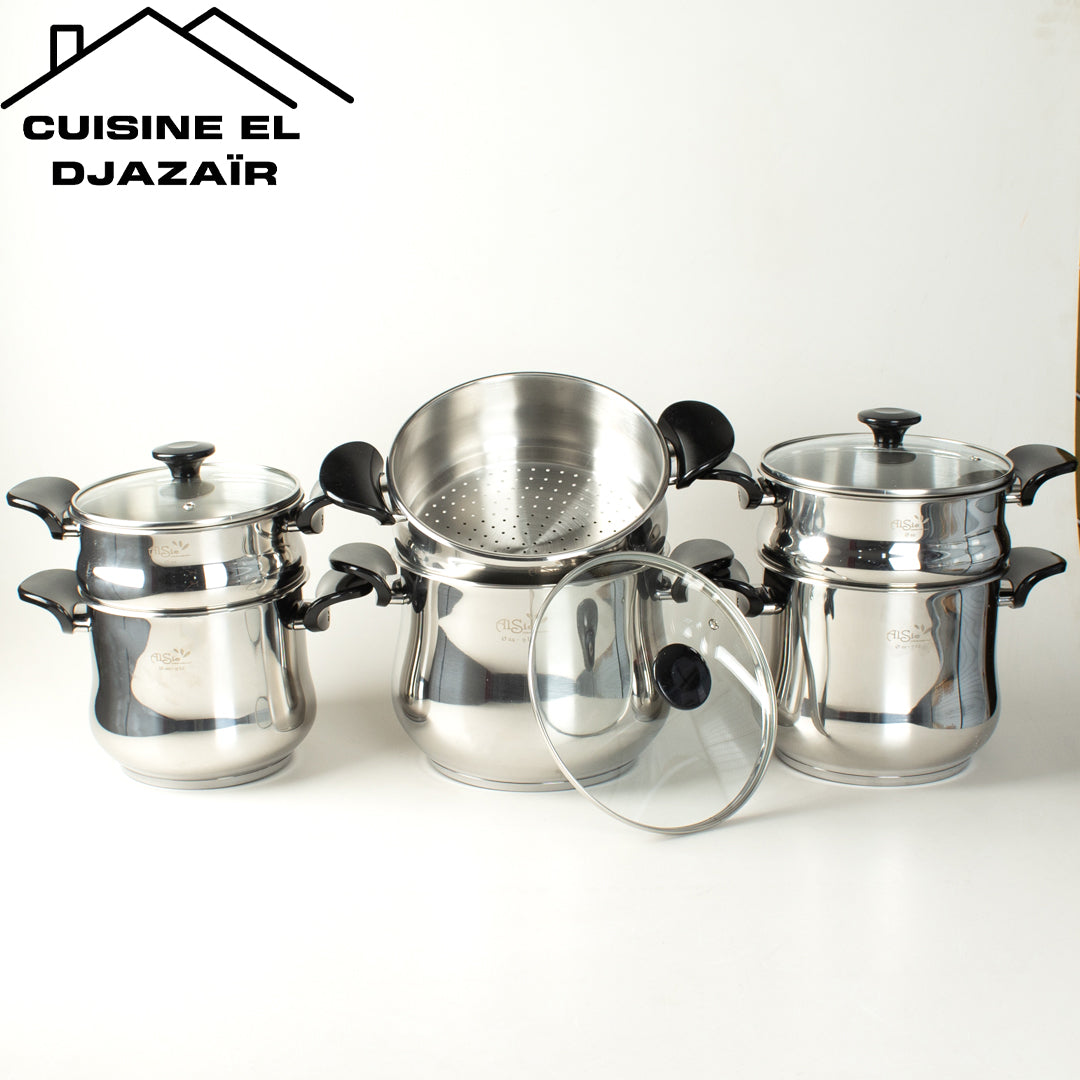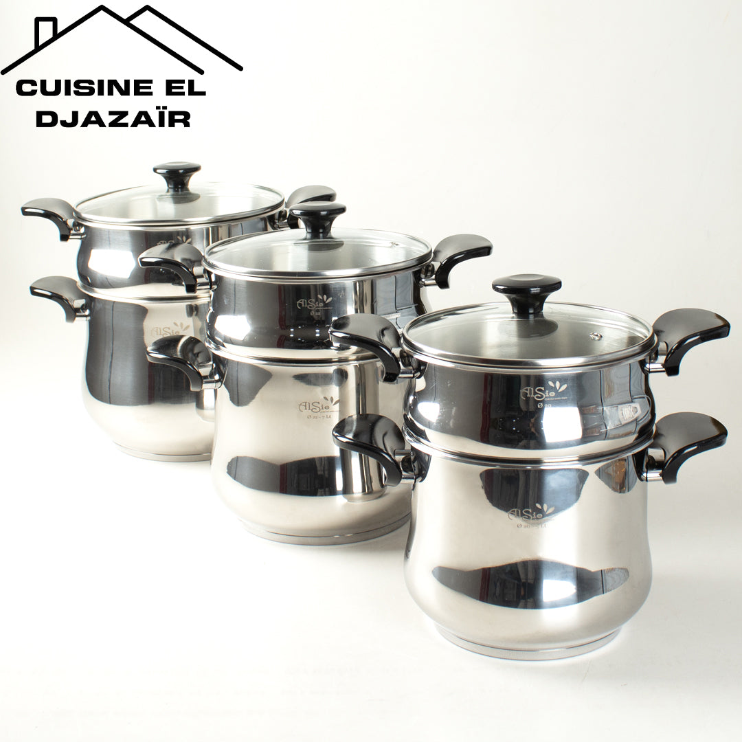 كل طنجرة مزودة بـ الكسكاس الخاص بها لتحضير ألذ وصفات الكسكس والأطباق بالبخار بسهولة.